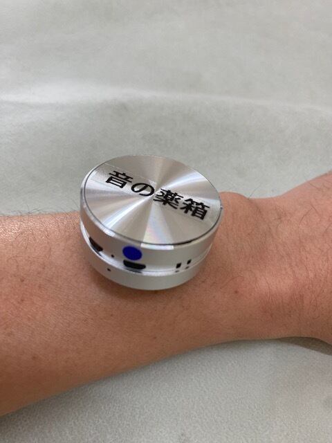 『音の薬箱シリーズ』は、この「固有の周波数」に着目し、様々なパターンの周波数を可聴音までトーンダウンして8~10個の音を和音にしてそれぞれ作成し、それを「聴く」だけでなく、その病んでいる部位や、身体に有効なポイント(セラピーポイント)にバイブレーションとして注入し、共振させて正常化をしていくという新しい周波数コレクティング機です。